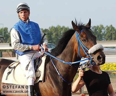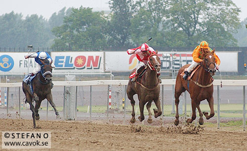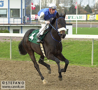 Peter mejlade mig för några dagar sedan och frågade om jag hade några bilder på hästen Tapdance. Jodå, en rask sökning i arkivet gav några träffar. Många minns säkert Tapdance som en av de bättre hästarna i treårskullen 2001. Han slutade god tvåa bakom Rickard i Jockeyklubbens Jubileumslöpning och tog senare på säsongen en stark tredjeplats bakom Final Care och Honeysuckle Player i Svenskt Derby (bild 1). Moderlivsimporten tränades av Michael Kahn och ägdes av det välbekanta konsortiet Stall SKS. Tapdance dog 2003. Notera förresten Dina Danekildes vinröda dressfärg på bild 3. För visst minns ni jockey/nummerfärgerna som användes i TrioKomberna under en kortare tid? Ett intressant men tämligen misslyckat experiment om jag får säga det själv.