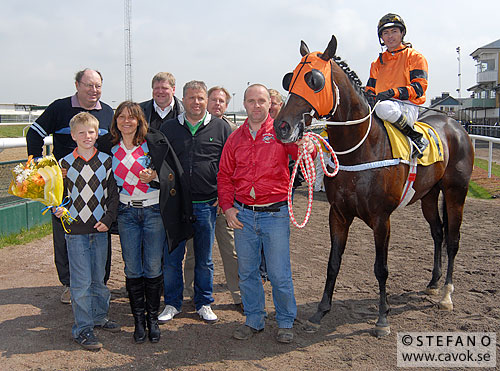Tina: Det är bara belöningen för ett fint utfört arbete. Jag vet att alla i stallet jobbar hårt. Och du, att träcka häst i lopp 2 idag för att sedan rida vinnaren i lopp 4 var riktigt starkt! 🙂