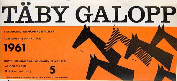 En stor del av måndagen har gått åt till att snickra ihop ett täbyprogram till lördag. Ni har säkert noterat att vi har en jubileumskväll på banan. Den 28 augusti är det nämligen exakt 50 år sedan Täby Galopp invigdes.